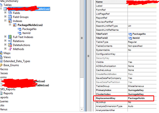 Indeximiz hazır, sıra geldi. Bu Indexi tabloya atamaya. Bunun için ise tablonun özelliklerinden REPLACAMENTKEY alanında ilgili indeximizi seçip olayı bitiyoruz.